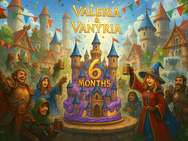 July 17, 2025, 08:00 – July 21, 2025, 08:00 (CET) To celebrate our 6 month anniversary, we’re hosting a special double event across both Vanyria and Valeria! Even though Vanyria isn't as old as Valeria, the event will be in full swing on both servers, because every player deserves a reason to celebrate! Double Event Highlights: 2x Experience 2x Loot 2x Skill 2x Boss & Bestiary 150% Bonus Tibia Coins! e.g. €10 = 3300 Tibia Coins instead of 2200! Daily Surprise Raids at 22:00 CET! Join us in this grand celebration and make the most of every moment. Thank you for being part of our journey, this is just the beginning! We do appreciate all of you!